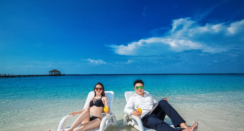 马尔代夫,那里椰林树影,水清沙幼,蓝天白云,是位于印度洋上的世外桃源,这里是天堂,是地球上最后一个乐园,白色的沙滩和缓地躺在小岛的四周,任凭海水轻柔地抚摸,从远处望去,分不清哪里是海水哪里是沙滩。